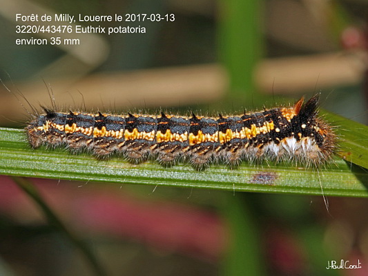 LASIOCAMPIDAE, Pinarinae, Selenepherini, Euthrix potatoria (Linnaeus, 1758)_3220/443476 chenille de la Buveuse_Forêt de Milly, Louerre le 2017-03-13 (environ 35 mm)_Ident : JPC