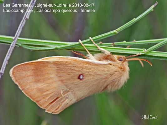 LASIOCAMPIDAE, Lasiocampinae, Lasiocampini, Lasiocampa (Lasiocampa) quercus (Linnaeus, 1758)_3214/443551 le Bombyx du chêne (femelle)_Les Garennes, Juigné-sur-Loire le 2010-08-17_Ident : JPC