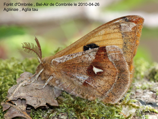 SATURNIIDAE, Agliinae, Aglia tau (Linnaeus, 1758)_3230/443627 la Hachette_Forêt d'Ombrée, Bel-Air de Combrée le 2010-04-26_Ident : JPC