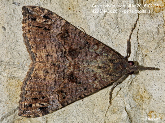 EREBIDAE, Hypeninae, Hypena obsitalis (Hübner, 1813)_4293/446828 L'Hypène des ponts_Cave privée, Vernoil le 2015-02-28_Ident : JPC