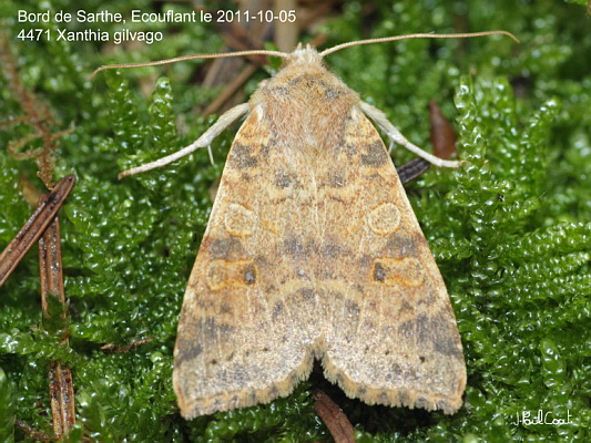 NOCTUIDAE, Noctuinae, Xylenini, Xanthia gilvago (D & S, 1775)_4471/447795 la Xanthie cendrée_Bord de la Sarthe, Ecouflant le 2011-10-05_Ident : J-P FAVRETTO