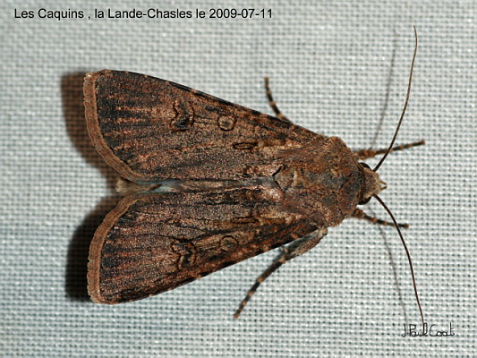 NOCTUIDAE, Noctuinae, Noctuini, Agrotis segetum (D & S, 1775)_4977/448472 la Noctuelle des moissons (femelle)_Les Caquins, la Lande-Chasles le 2009-07-11_Ident : J-P FAVRETTO