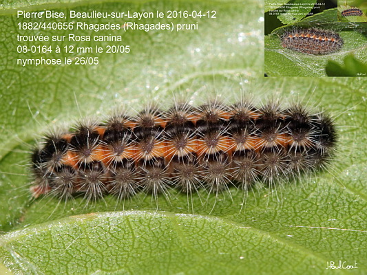 ZYGAENIDAE, Procridinae, Procridini, Rhagades (Rhagades) pruni (D & S, 1775)_1882/440656 chenille du Procris du prunellier sur Rosa canina_Pierre Bise, Beaulieu-sur-Layon le 2016-04-12 (08-0164 à 12 mm le 20/05)_Ident : JPC