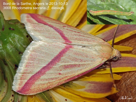 GEOMETRIDAE, Sterrhinae, Rhodometrini, Rhodometra sacraria (Linnaeus, 1758)_3668/444262 la Phalène sacrée (mâle)_Bord de Sarthe, Angers le 2013-10-13 (chenille du 28/09)_Ident :JPC élevage