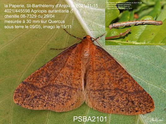 GEOMETRIDAE, Ennominae, Bistonini, Agriopis aurantiaria (Hübner, 1799)_4021/445598 l'Hibernie orangée mâle_la Paperie, St-Barthélemy d'Anjou le 2021-11-15 (élevage chenille 08-7329 du 29/04 mesurée à 30 mm sur Quercus, sous terre le 09/05, imago le 15/11)_Ident : JPC PSBA2101