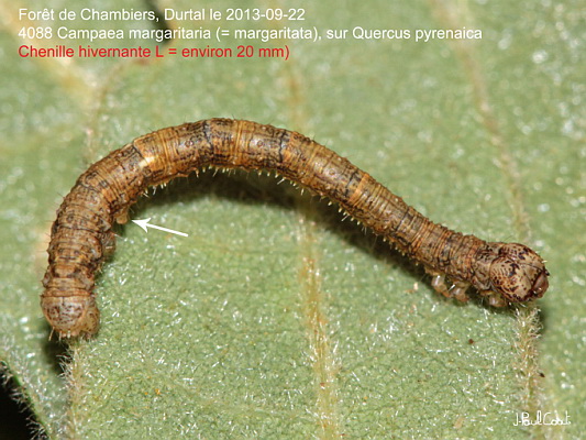 GEOMETRIDAE, Ennominae, Campaeini, Campaea margaritaria (Linnaeus, 1761) (= margaritata)_4088/445941 chenille du Céladon sur Quercus pyrenaica_Forêt de Chambiers, Durtal le 2013-09-22_Ident : JPC