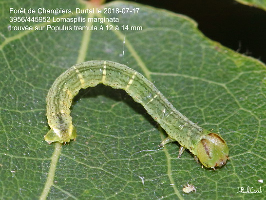 GEOMETRIDAE, Ennominae, Cassymini, Lomaspilis marginata (Linnaeus, 1758)_3956/445952 chenille de la Bordure entrecoupée, la Marginée_Forêt de Chambiers, Durtal le 2018-07-17 (12 à 14 mm sur Populus tremula)_Ident : JPC