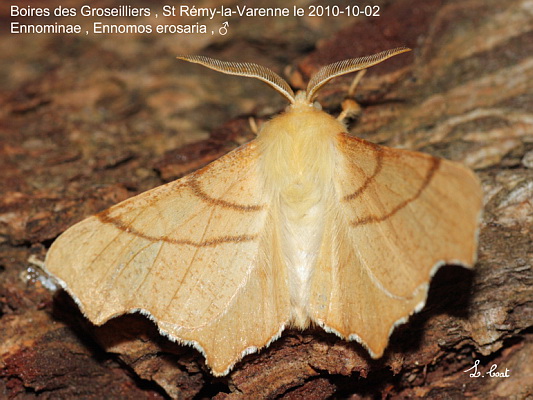 GEOMETRIDAE, Ennominae, Ennomini, Ennomos erosaria (D & S, 1775)_4003/445977 l'Ennomos rongée (mâle)_Boires des Groseilliers, St Rémy-la-Varenne le 2010-10-02_Ident : J-P FAVRETTO