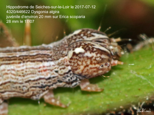 EREBIDAE, Erebinae, Ophiusini, Dysgonia algira (Linnaeus, 1767)_4320/446622 chenille de la Passagère_Hippodrome de Seiches-sur-le-Loir le 2017-07-12 (environ 20 mm sur Erica scoparia, 28 mm le 17/07)_Ident : JPC