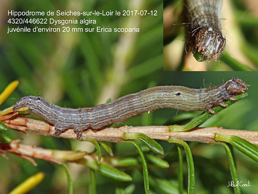 EREBIDAE, Erebinae, Ophiusini, Dysgonia algira (Linnaeus, 1767)_4320/446622 chenille de la Passagère_Hippodrome de Seiches-sur-le-Loir le 2017-07-12 (environ 20 mm sur Erica scoparia)_Ident : JPC