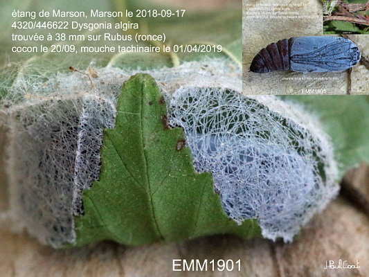 EREBIDAE, Erebinae, Ophiusini, Dysgonia algira (Linnaeus, 1767)_4320/446622 cocon de la Passagère_étang de Marson, Marson le 2018-09-17 (trouvée à 38 mm sur Rubus, cocon le 20/09, mouche tachinaire le 01/04/2019)_Ident : JPC EMM1901