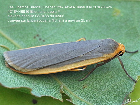 EREBIDAE, Arctiinae, Lithosiini, Eilema lurideola (Zincken, 1817)_4218/446916 la Lithosie complanule, la Lithosie plombée_les Champs Blancs, Chênehutte-Trèves-Cunault le 2016-06-26 (élevage chenille 08-0488 du 03/06)_Ident : JPC
