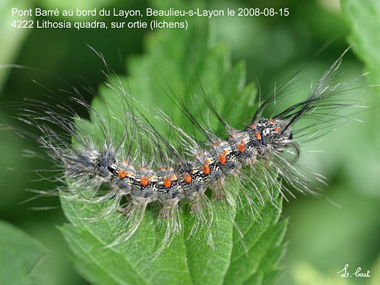 EREBIDAE, Arctiinae, Lithosiini, Lithosia quadra (Linnaeus, 1758)_4222/446934 chenille de la Lithosie quadrille (lichens)_Pont Barré au bord du Layon, Beaulieu-s-Layon le 2008-08-15_Ident : Serge WAMBEKE