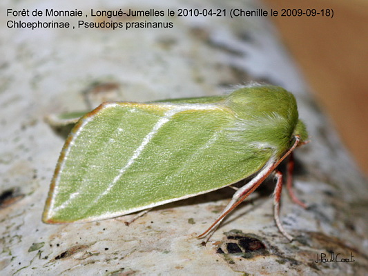 NOLIDAE, Chloephorinae, Chloephorini, Pseudoips prasinana (Linnaeus, 1758)_4389/447140 la Halias du Hêtre_Forêt de Monnaie, Longué-Jumelles le 2010-04-21 (Chenille le 2009-09-18)_Ident : JPC