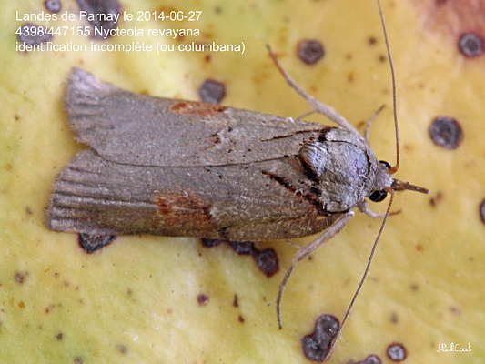 NOLIDAE, Chloephorinae, Sarrothripini, Nycteola revayana (Scopoli, 1772)_4398/447155 la Sarrothripe de Revay_Landes de Parnay le 2014-06-27_Ident : incomplète (ou columbana)