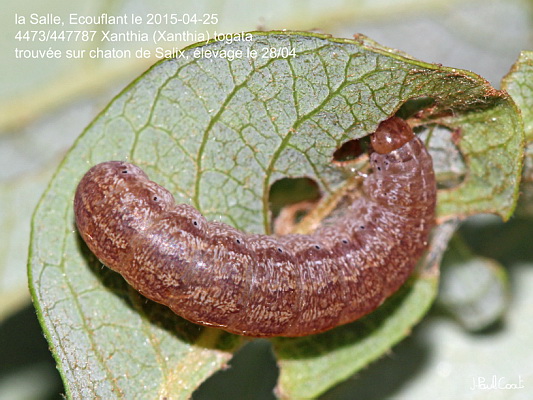 NOCTUIDAE, Noctuinae, Xylenini, Xanthia togata (Esper, 1788)_4473/447787 chenille de la Mantelée, la Xanthie ochracée_la Salle, Ecouflant le 2015-04-25 (élevage le 28/04)_Ident : JPC