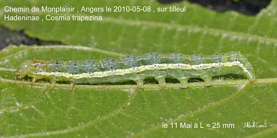 NOCTUIDAE, Noctuinae, Xylenini, Cosmia (Calymnia) trapezina (Linnaeus, 1758)_4740/447829 chenille du Trapèze_Chemin de Monplaisir, Angers le 2010-05-08 (le 11 Mai à 25 mm)_Ident : JPC