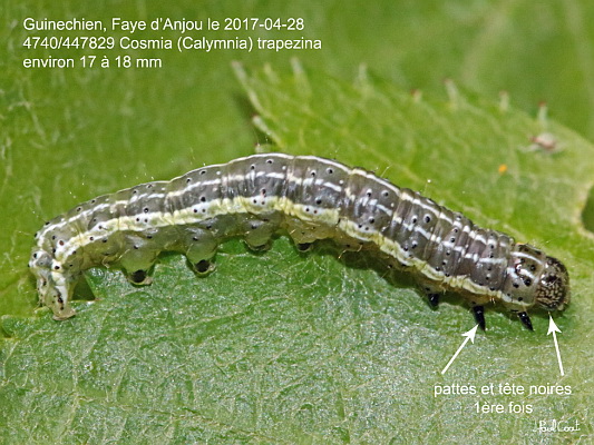 NOCTUIDAE, Noctuinae, Xylenini, Cosmia (Calymnia) trapezina (Linnaeus, 1758)_4740/447829 chenille du Trapèze_Guinechien, Faye d’Anjou le 2017-04-28 (environ 17 à 18 mm)_Ident : JPC