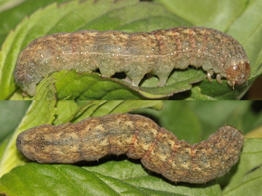 NOCTUIDAE, Noctuinae, Xylenini, Trigonophora (Trigonophora) flammea (Esper, 1785)_4521/447983 chenille sur Mentha de la Noctuelle embrasée_Notre jardin, Angers le 2014-04-30 (élevage le 02 mai)_Ident : Philippe Mothiron