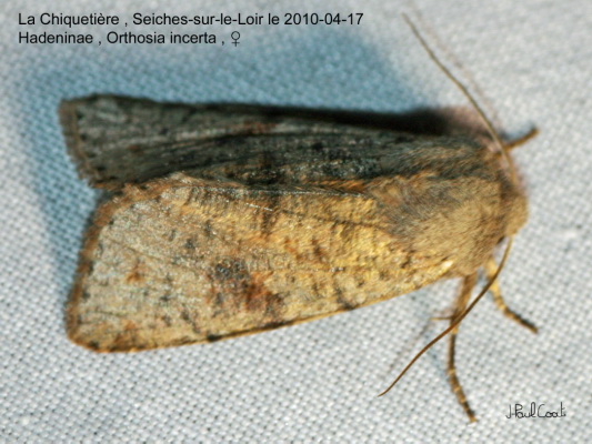 NOCTUIDAE, Noctuinae, Orthosiini, Orthosia (Orthosia) incerta (Hufnagel, 1767)_4800/448062 l'Inconstante, la Fragile, l'Orthosie variable (femelle)_La Chiquetière, Seiches-sur-le-Loir le 2010-04-17_Ident : J-P FAVRETTO