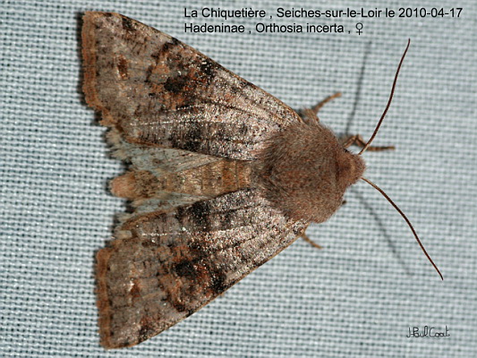 NOCTUIDAE, Noctuinae, Orthosiini, Orthosia (Orthosia) incerta (Hufnagel, 1767)_4800/448062 l'Inconstante, la Fragile, l'Orthosie variable (femelle)_La Chiquetière, Seiches-sur-le-Loir le 2010-04-17_Ident : J-P FAVRETTO