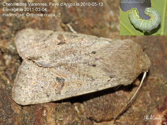 NOCTUIDAE, Noctuinae, Orthosiini, Orthosia (Monima) cruda (D & S, 1775)_4806/448071 la Téniocampe ambigüe, l'Orthosie farineuse (mâle)_Les Varennes, Faye d'Anjou le 2011-03-05 (chenille du 2010-05-13)_Ident : JPC