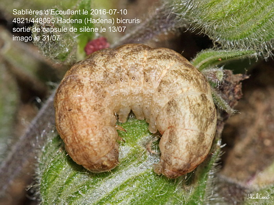 NOCTUIDAE, Noctuinae, Hadenini, Hadena (Hadena) bicruris (Hufnagel, 1766)_4821/448095 chenille de la Noctuelle capsulaire sur Silène Latifolia alba_Sablières d'Ecouflant le 2016-07-10 (sortie de capsule le 13/07, imago le 31/07)_Ident : JPC