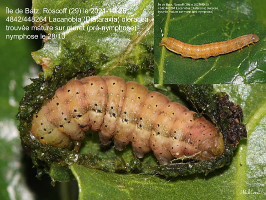 NOCTUIDAE, Noctuinae, Hadenini, Lacanobia (Diataraxia) oleracea (Linnaeus, 1758)_4842/448264 chenille de la Noctuelle potagère_Île de Batz, Roscoff (29) le 2021-10-25 (trouvée mature sur muret en pré-nymphose, nymphose le 28/10)_Ident : JPC