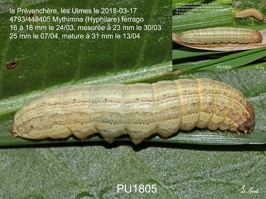 NOCTUIDAE, Noctuinae, Leucaniini, Mythimna (Hyphilare) ferrago (Fabricius, 1787)_4793/448405 chenille de la Noctuelle lythargyrée_la Prévenchère, les Ulmes le 2018-03-17 (16 à 18 mm le 24/03, 25 mm le 07/04, mature à 31 mm le 13/04)_Ident : JPC PU1805