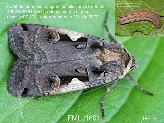NOCTUIDAE, Noctuinae, Noctuini, Xestia (Megasema) c-nigrum (Linnaeus, 1758)_4888/448764 le C noir_Forêt de Monnaie, Longué-Jumelles le 2016-05-02 (élevage chenille 07-5741)_Ident : JPC FMLJ1601