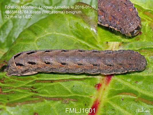 NOCTUIDAE, Noctuinae, Noctuini, Xestia (Megasema) c-nigrum (Linnaeus, 1758)_4888/448764 chenille du C noir_Forêt de Monnaie, Longué-Jumelles le 2016-01-10 (32 mm le 14/02)_Ident : JPC FMLJ1601