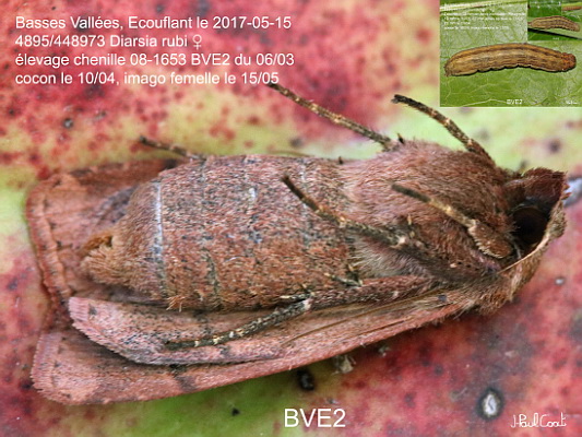 NOCTUIDAE, Noctuinae, Noctuini, Diarsia rubi (Vieweg, 1790)_4895/448973 la Noctuelle Belle femelle_Basses Vallées, Ecouflant le 2017-05-15 (élevage chenille 08-1653 du 06/03)_Ident : JPC BVE2