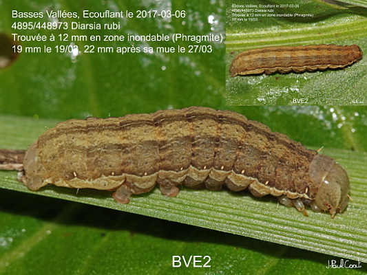 NOCTUIDAE, Noctuinae, Noctuini, Diarsia rubi (Vieweg, 1790)_4895/448973 chenille de la Noctuelle Belle_Basses Vallées, Ecouflant le 2017-03-06 (19 mm le 19/03, 22 mm après sa mue le 27/03)_Ident : JPC BVE2