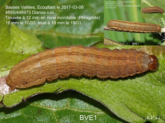 NOCTUIDAE, Noctuinae, Noctuini, Diarsia rubi (Vieweg, 1790)_4895/448973 chenille de la Noctuelle Belle_Basses Vallées, Ecouflant le 2017-03-06 (16 mm le 10/03, mue à 19 mm le 19/03)_Ident : JPC BVE1