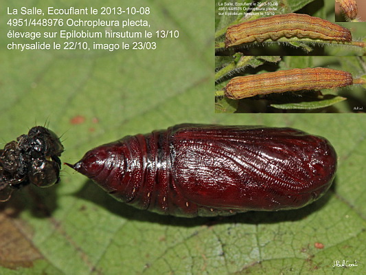 NOCTUIDAE, Noctuinae, Noctuini, Ochropleura plecta (Linnaeus, 1758)_4951/448976 chrysalide du Cordon blanc_La Salle, Ecouflant le 2013-10-08 (élevage sur Epilobium hirsutum, chrysalide le 22/10, imago le 23/03)_Ident : JPC