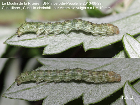 NOCTUIDAE, Cuculliinae, Cucullia (Cucullia) absinthii (Linnaeus, 1761)_4622/449298 chenille de la Pointillée, la Cucullie de l'absinthe_Le Moulin de la Rivière, St-Philbert-du-Peuple le 2010-08-29_Ident : JPC