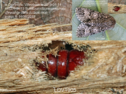 NOCTUIDAE, Acronictinae, Subacronicta megacephala (D & S, 1775)_4462/449413 chrysalide de la Noctuelle mégacéphale_la Dionnière, Villevêque le 2019-01-14 (chrysalide trouvée dans du bois mort, imago le 14/06)_Ident : JPC LDV1905