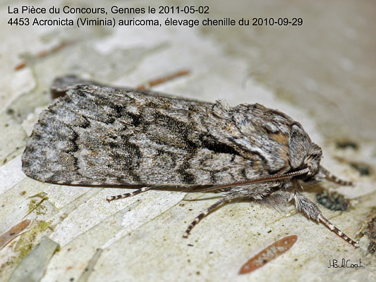 NOCTUIDAE, Acronictinae, Acronicta (Viminia) auricoma (D & S, 1775)_4453/449430 la Chevelure dorée_La Pièce du Concours, Gennes le 2011-05-02 (chenille du 2010-09-29)_Ident : JPC