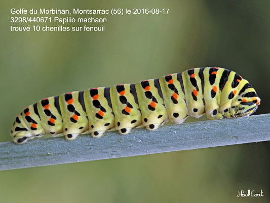 PAPILIONIDAE, Papilioninae, Papilionini, Papilio machaon (Linnaeus, 1758)_3298/440671 chenille du Machaon, le Grand Porte-queue_Golfe du Morbihan, Montsarrac (56) le 2016-08-17