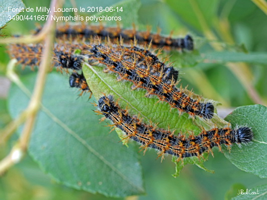 NYMPHALIDAE, Nymphalinae, Nymphalini, Nymphalis polychloros (Linnaeus, 1758)_3490/441667 chenille de la Grande tortue_Forêt de Milly, Louerre le 2018-06-14_Ident : JPC