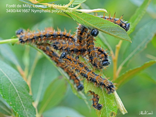 NYMPHALIDAE, Nymphalinae, Nymphalini, Nymphalis polychloros (Linnaeus, 1758)_3490/441667 chenille de la Grande tortue_Forêt de Milly, Louerre le 2018-06-14_Ident : JPC