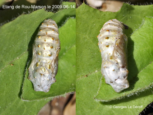 NYMPHALIDAE, Nymphalinae, Nymphalini, Vanessa cardui (Linnaeus, 1758) (= Cynthia)_3495/441686 chrysalide de la Belle-dame_Etang de Rou-Marson le 2009-06-14