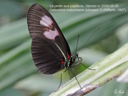 NYMPHALIDAE, Heliconiinae, Heliconius melpomene (plesseni ?) (Riffarth, 1907)_Amérique du sud et Centrale (Costa Rica)_Le jardin aux papillons, Vannes le 2009-08-05
