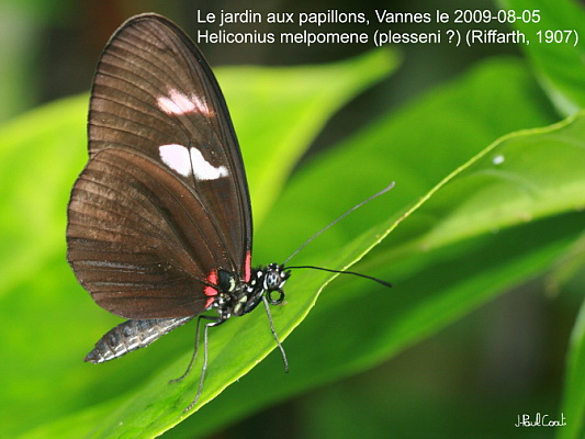 NYMPHALIDAE, Heliconiinae, Heliconius melpomene (plesseni ?) (Riffarth, 1907)_Amérique du sud et Centrale (Costa Rica)_Le jardin aux papillons, Vannes le 2009-08-05