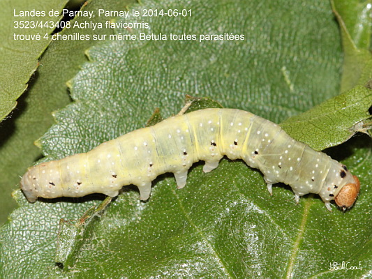 DREPANIDAE, Thyatirinae, Achlya flavicornis (Linnaeus, 1758)_3523/443408 chenille du Flavicorne_landes de Parnay, Parnay le 2014-06-01_Ident : JPC
