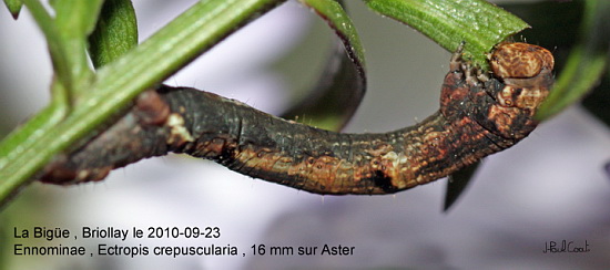 GEOMETRIDAE, Ennominae, Boarmiini, Ectropis crepuscularia (D & S, 1775)_4070/445706 chenille de la Boarmie crépusculaire sur Aster_La Bigüe, Briollay le 2010-09-23_Ident : JPC