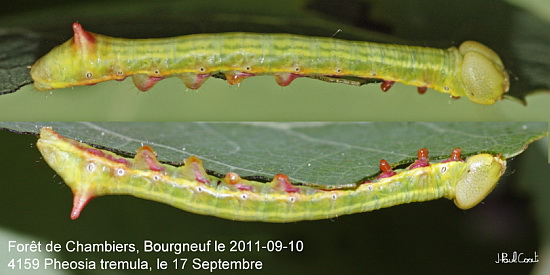 NOTODONTIDAE, Notodontinae, Notodontini, Pheosia tremula (Clerk, 1759)_4159/446422 chenille de la Porcelaine (mm)_Forêt de Chambiers, Bourneuf le 2011-09-10 (le 17 Septembre)_Ident : JPC