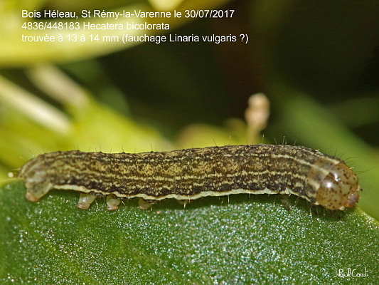 NOCTUIDAE, Noctuinae, Hadenini, Hecatera bicolorata (Hufnagel, 1766) (= Aetheria)_4836/448183 chenille de la Noctuelle sereine_Bois Héleau, St Rémy-la-Varenne le 30/07/2017 (13 à 14 mm)_Ident : JPC