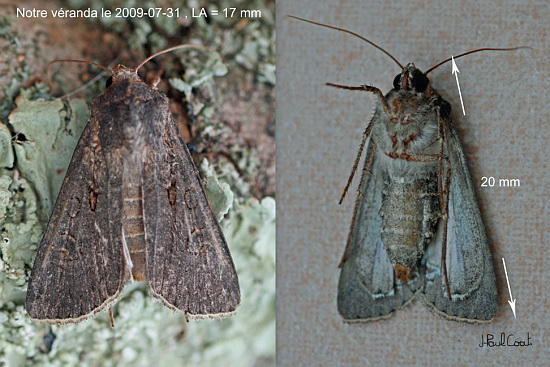 NOCTUIDAE, Noctuinae, Noctuini, Agrotis segetum (D & S, 1775)_4977/448472 la Noctuelle des Moissons (femelle)_Notre véranda, Angers le 2009-07-31_Ident : J-P FAVRETTO