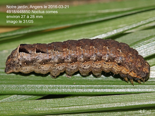 NOCTUIDAE, Noctuinae, Noctuini, Noctua comes (Hübner, 1813)_4918/448850 chenille de la Hulotte_Notre jardin, Angers le 2016-03-21 (environ 27 à 28 mm)_Ident : JPC
